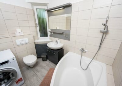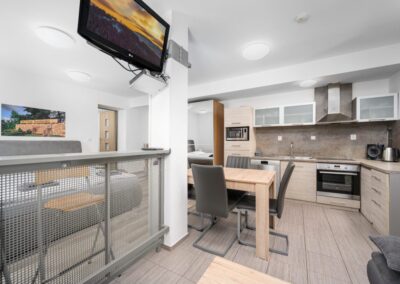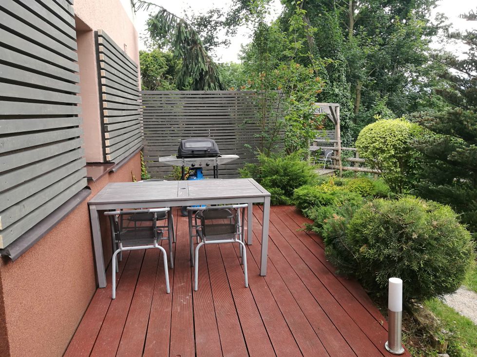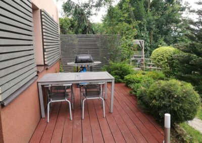 TOP Apartmán AV3 má 2 pokoje, vlastní dřevěnou terasu s plynovým grilem a posezením, koupelnu s rohovou vanou a plně vybavenou kuchyň.