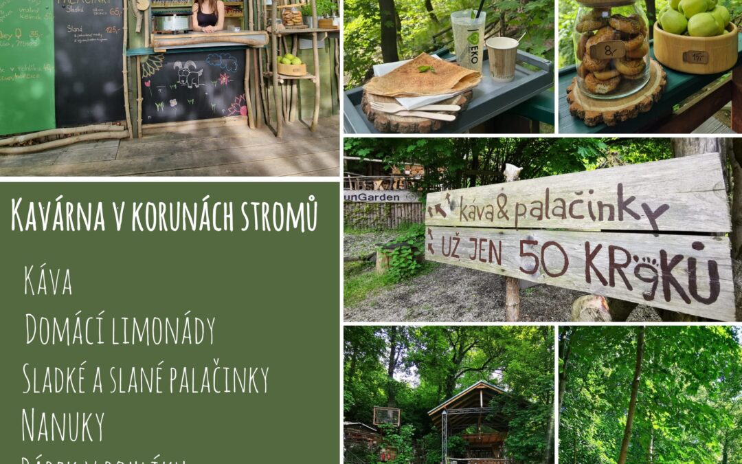 Součástí EKOParku je i každý den otevřená KAVÁRNA V KORUNÁCH STROMŮ (v létě 9:00 – 19:00).