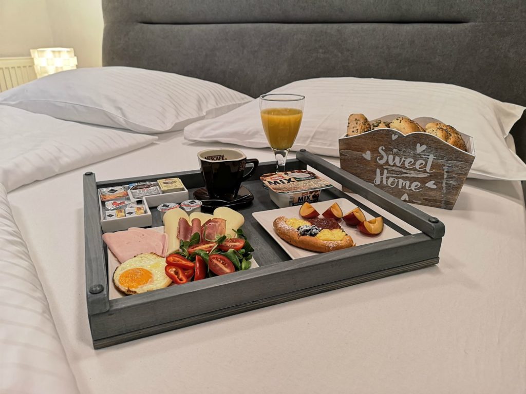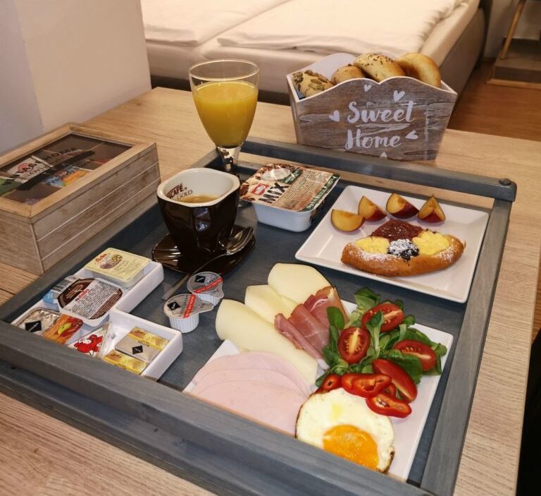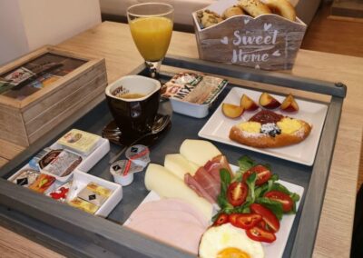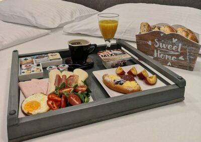 Objednejte si u nás bohatou snídani, kterou vám doneseme přímo do Vašeho apartmánu.