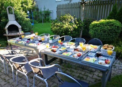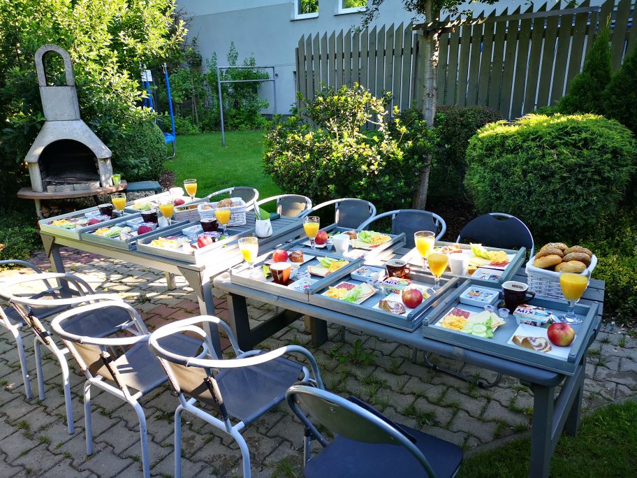 Za příznivého počasí je možné podávat snídani na vaše přání i v prostorách našich zahrad.