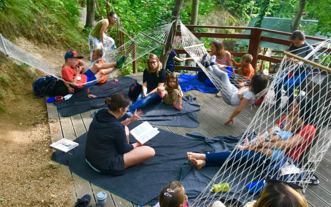 👉Dále se můžete natáhnout do houpací sítě ve stínu stromů a zaposlouchat se do pohádky 😎🌳📖.